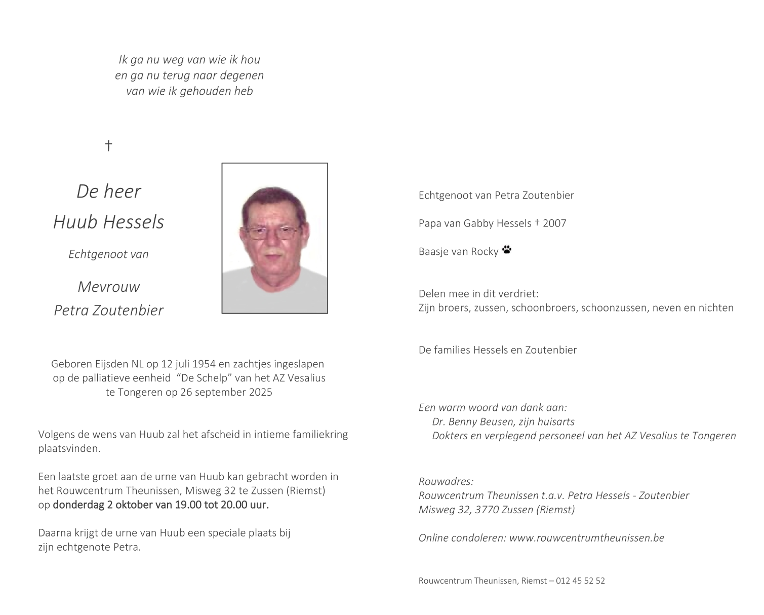 Décédé à Tongeren (3700) le vendredi 26 septembre 2025 à l'âge de 71 ans