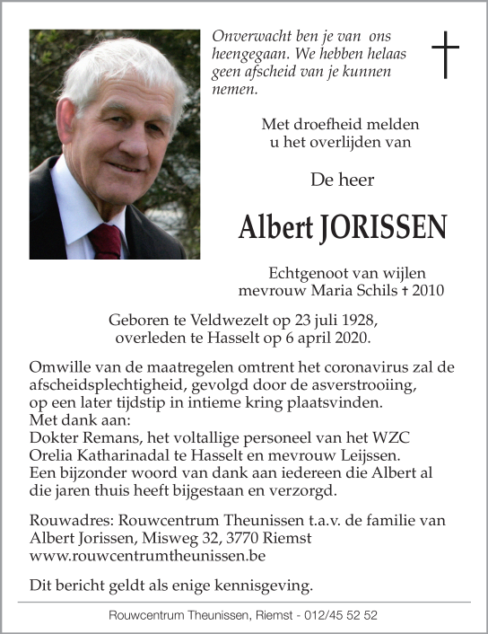 Décédé à Hasselt (3500) le lundi 6 avril 2020 à l'âge de 91 ans