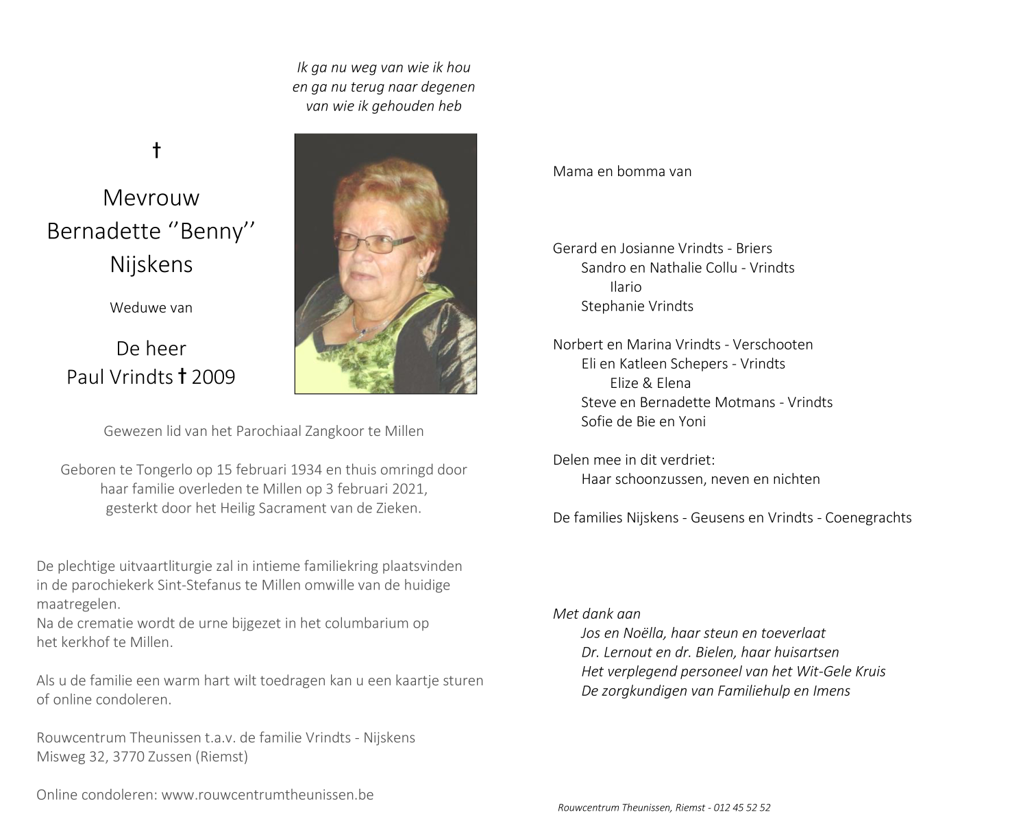 Née à Tongerlo (Antw.) (2260) le jeudi 15 février 1934