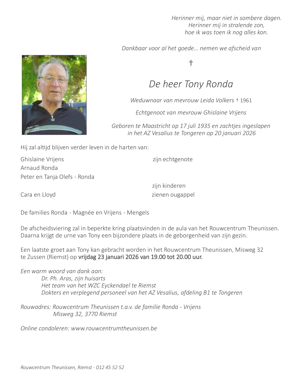Décédé à Tongeren (3700) le mardi 20 janvier 2026 à l'âge de 90 ans