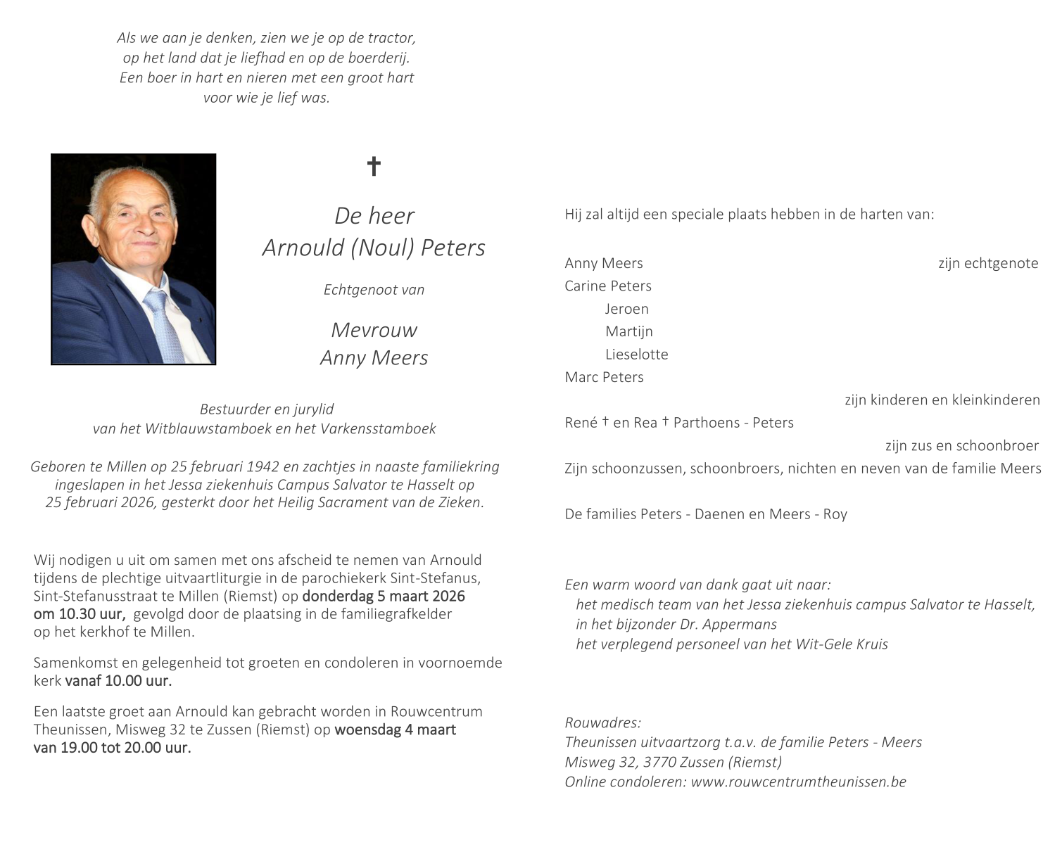 Décédé à Hasselt (3500) le mercredi 25 février 2026 à l'âge de 84 ans