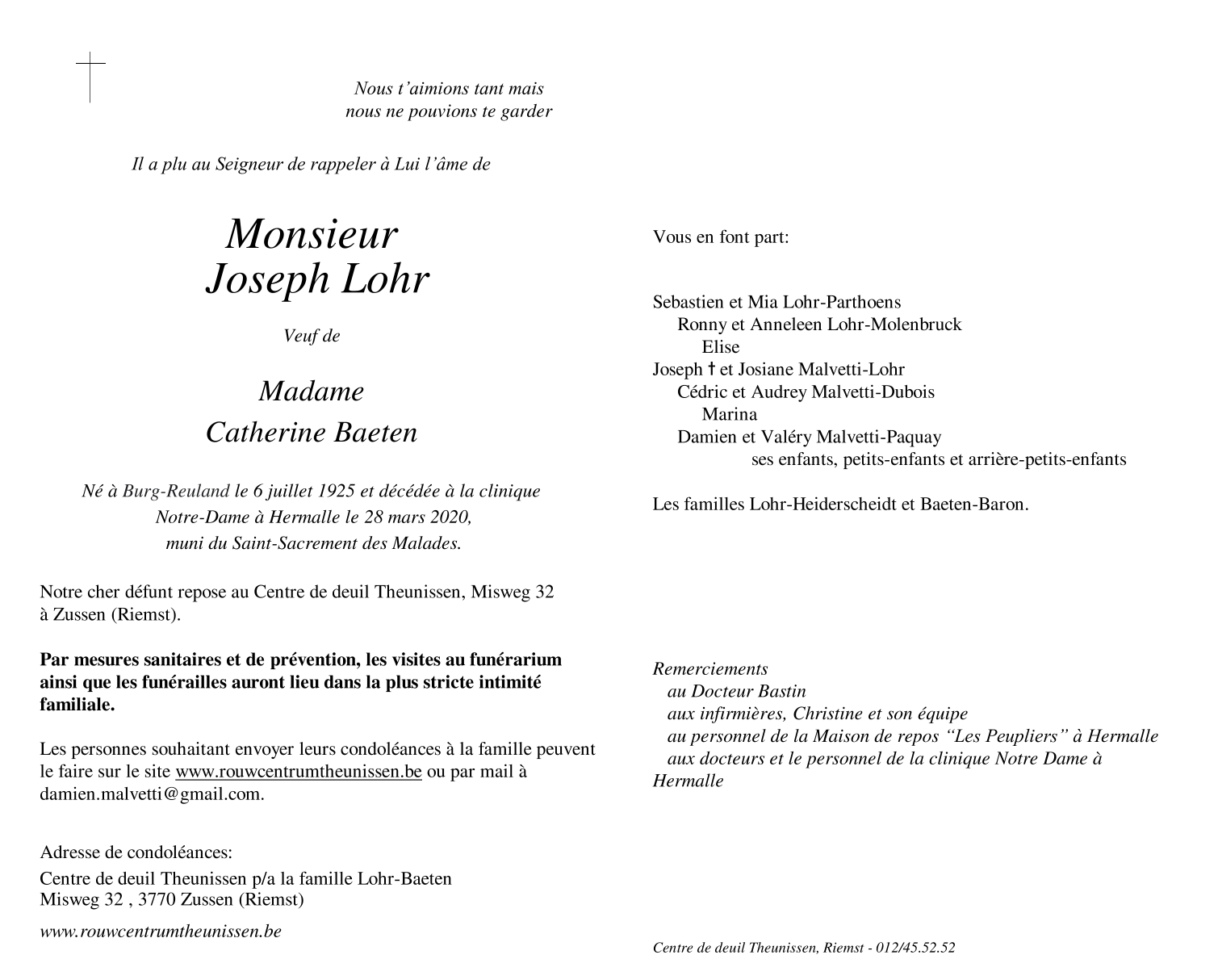 Décédé à Oupeye (4680) le samedi 28 mars 2020 à l'âge de 94 ans