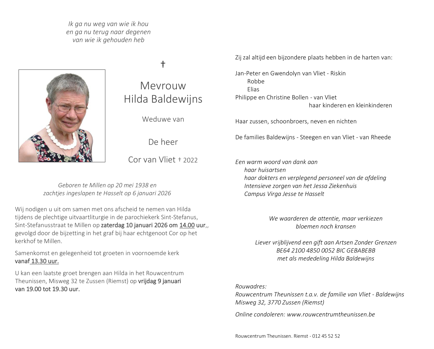 Décédée à Hasselt (3500) le mardi 6 janvier 2026 à l'âge de 87 ans