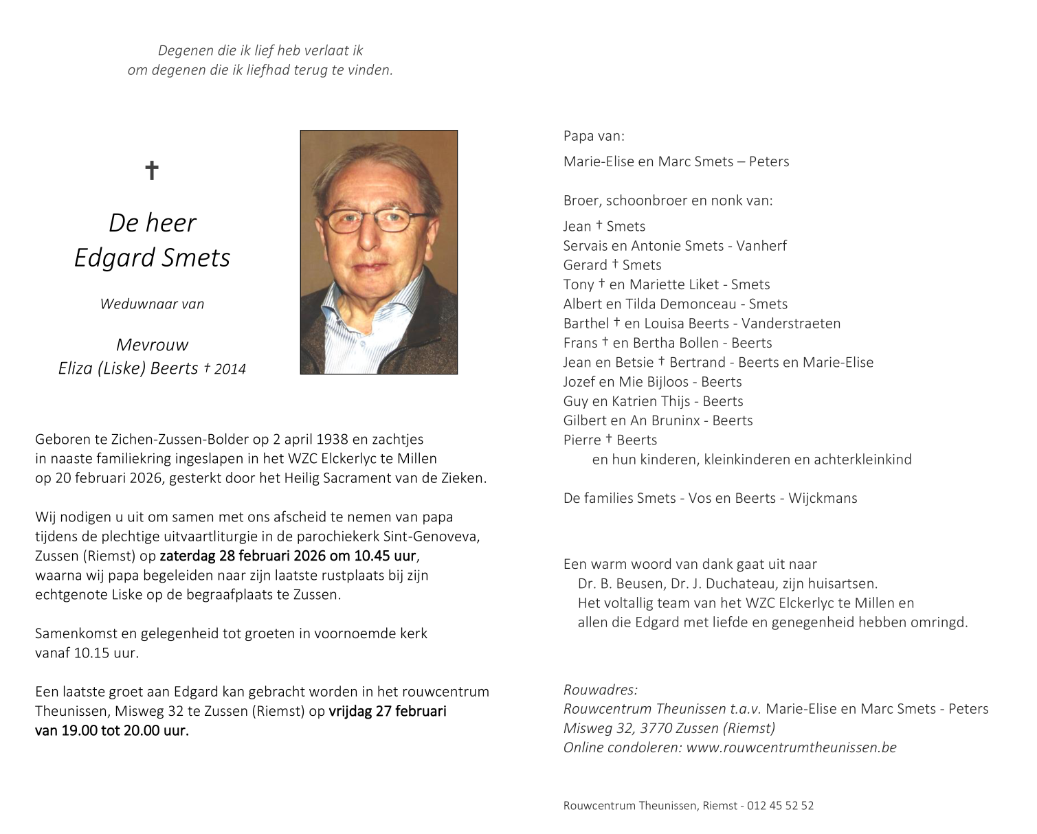 Décédé à Millen (3770) le vendredi 20 février 2026 à l'âge de 87 ans